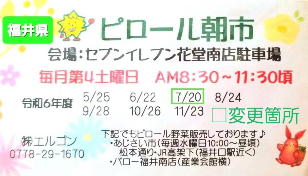 第3回福井ピロール朝市7月20日に開催します!/株式会社エルゴン