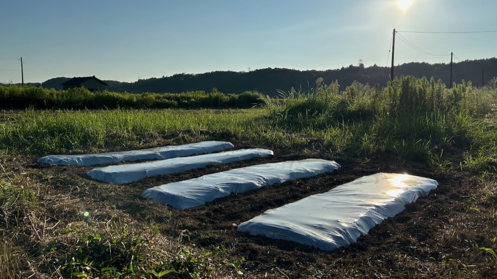 これまでの草の勢いがすごかったので、草マルチでは草ボーボーが再現されそうな予感がして断念。